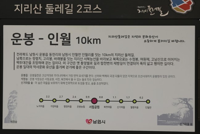 전북 남원시 운봉읍 동천리와 남원시 인월면 인월리를 연결하는 9.9km의 지리산 제2둘레길.