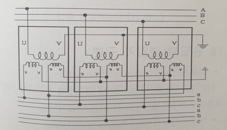 송전선에 있어서, 1차측 유기전압과 2차측 유기전압간에는 결선방법에 따라 위상각차가 발생한다.