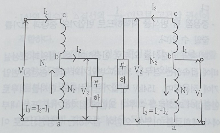 단권변압기에서 권선 bc를 직렬권선, 권선 ab를 분로권선이라 부른다.