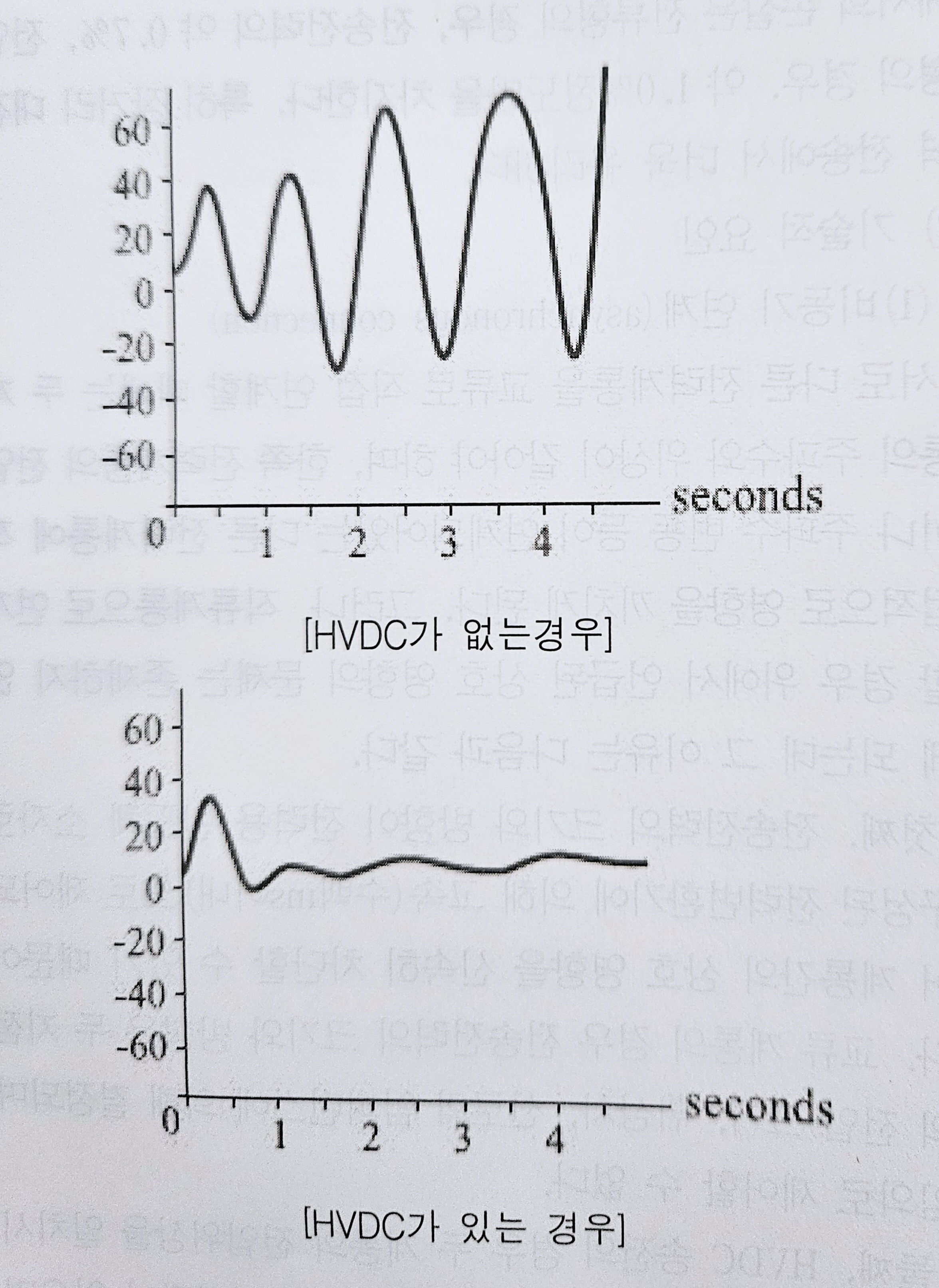 아래는 HVDC 계통이 포함된 경우와 그렇지 않은 경우 외부영향에 의한 감쇠의 정도를 나타낸다